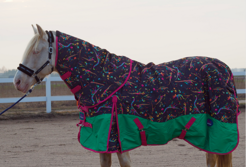 Twój koń zasługuje na to, co najlepsze! Derka padokowa „Galaxy Dinos Unique” od marki Savio to idealne połączenie funkcjonalności, trwałości i wyjątkowego designu. Jej unikalny wzór z uroczymi lamami sprawi, że Twój koń będzie wyglądał elegancko i stylowo, jednocześnie zapewniając mu maksymalny komfort i skuteczną ochronę.