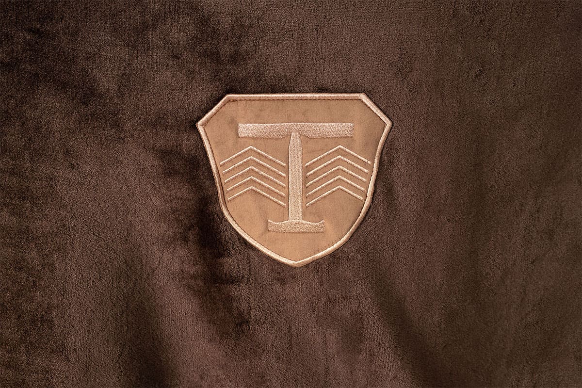 Derka ozdobiona jest eleganckimi welwetowymi naszywkami z złotymi haftami, nawiązującymi do stylistyki kolekcji Royal 2.0. Perfekcyjny krój sprawia, że doskonale układa się na grzbiecie, a wywijany kołnierz chroni szyję przed chłodem. Zapięcie na pojedynczy, regulowany pasek z rzepem oraz pasek pod ogon z ekoskóry zapewniają wygodne i stabilne dopasowanie.